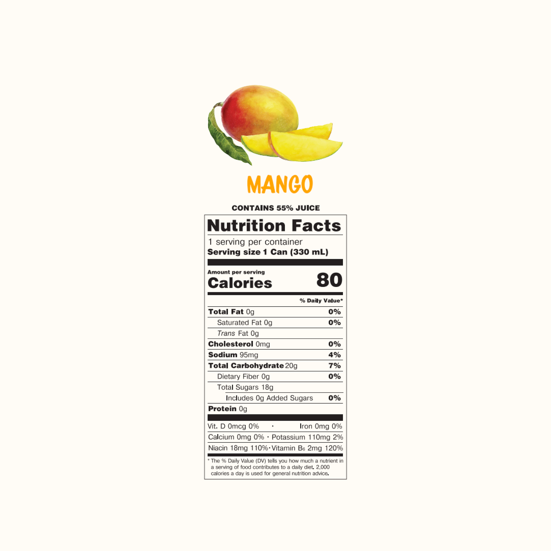 Carbonated Water, Apple Juice Concentrate, White Grape Juice Concentrate, Mango Juice Concentrate, Citric Acid, Gum Arabic, Color (Beta-Carotene, Caramel), Niacinamide (Vitamin B3), Ascorbic Acid, Pyridoxine Hydrochloride (Vitamin B6), Natural Flavors